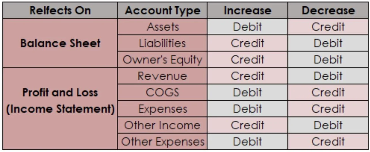 Account Type Debit Credit Assets Increase Decrease Liabilities Decrease Increase Equity Decrease Increase Revenue Decrease Increase Expenses Increase Decrease